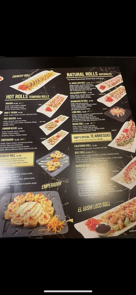 El Sushi Loco Sushi & Mariscos in La Puente is a Latinx-owned restaurant that offers a unique fusion of Japanese sushi and Mexican seafood dishes. The menu features a variety of dishes like campechana, aguachiles, oyster shots, and rolls like the emperador roll. Customers praise the flavorful and authentic food, with standout items like the aguachile tostada and jaiva tostada. The restaurant provides great customer service, with attentive waitstaff like Lizette and a pleasant dining atmosphere. While some customers note minor concerns like the cleanliness of the floors, overall, El Sushi Loco impresses with its delicious food and welcoming ambiance. Don't miss the opportunity to try this hidden gem for a unique culinary experience!
